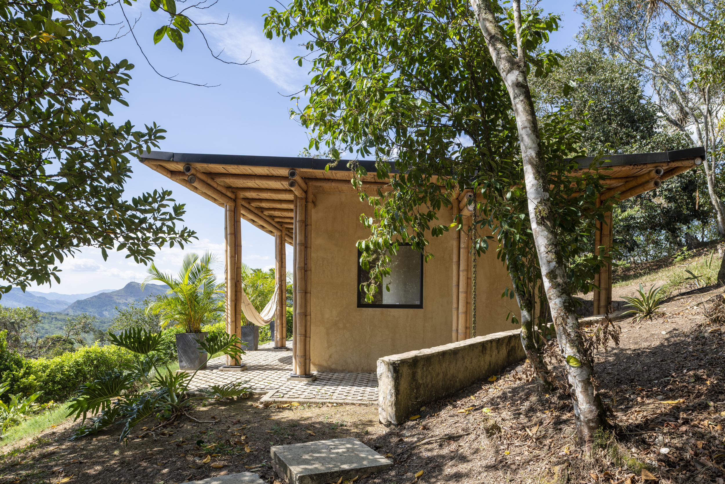 The project establishes new readings to traditional elements such as bamboo, pitch roof, and usable corridor to become an artifice, by definition anomalous to nature, that is capable of exalting its surroundings, its history and its landscape